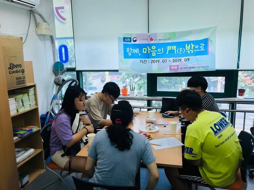 비장애형제자매 해외배낭여행 캠프 함께, 마음의 문 밖으로 세부사업 진행사진입니다. 8/18 일요일 진행, 8/23~26일 여행일 사전에 직접 참여자들이 여행을 계획한 일정을 숙지하고 여행중에 지켜야 할 수칙들을 정하고 숙지하는등, 이야기를 나누었습니다.^^