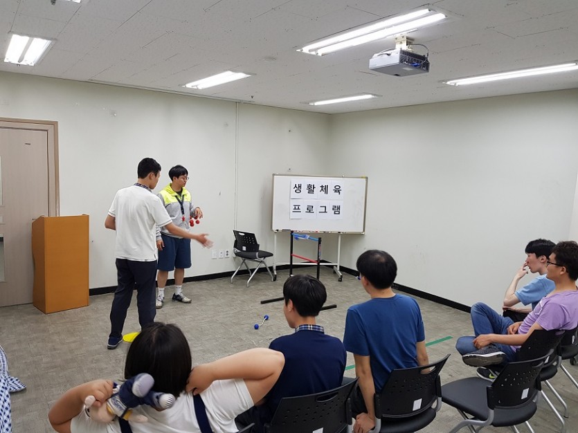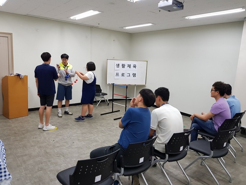 장애인 생활체육 프로그램 (7회기) 페이지 정보 작성자 관리자 댓글 0건 조회 1,743회 작성일 19-05-22 00:21 목록 본문 페이스북 공유 트위터 공유 구글+ 공유 장애인 생활체육 프로그램 7회기 진행하였습니다. 간단한 체조와 보치아볼, 레더볼을 활용하여 뉴스포츠 게임규칙 알아보기, 사고력, 집중력 기르기 진행하였습니다~^^ 이전글무지개동아리 활동 19.05.24 다음글장애인 생활체육 프로그램 (6회기) 19.05.16