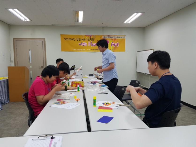 성인장애인 평생교육 우수프로그램 나의hart♥art (금 7회기) 페이지 정보 작성자 관리자 댓글 0건 조회 1,717회 작성일 18-06-08 00:21 목록 본문 페이스북 공유 트위터 공유 구글+ 공유 이전글찾아가는 생활체육 프로그램 성인발달장애인 스트레칭교실(월) 18.06.11 다음글찾아가는 생활체육 프로그램 성인발달장애인 스트레칭교실(월) 18.06.04