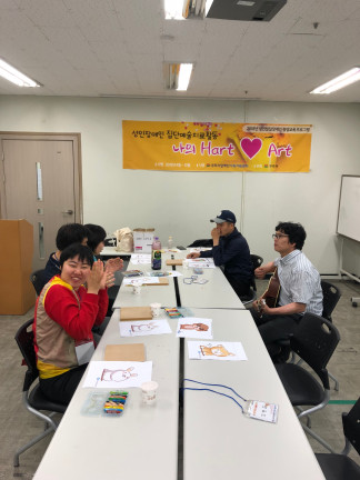 성인장애인 평생교육 우수프로그램 나의hart♥art (금 3회기) 페이지 정보 작성자 김아롬 댓글 0건 조회 1,728회 작성일 18-05-11 00:20 목록 본문 페이스북 공유 트위터 공유 구글+ 공유 이전글찾아가는 생활체육 프로그램 성인발달장애인 스트레칭교실(월) 18.05.14 다음글동료상담사 슈퍼비전 진행 (목) 18.05.10