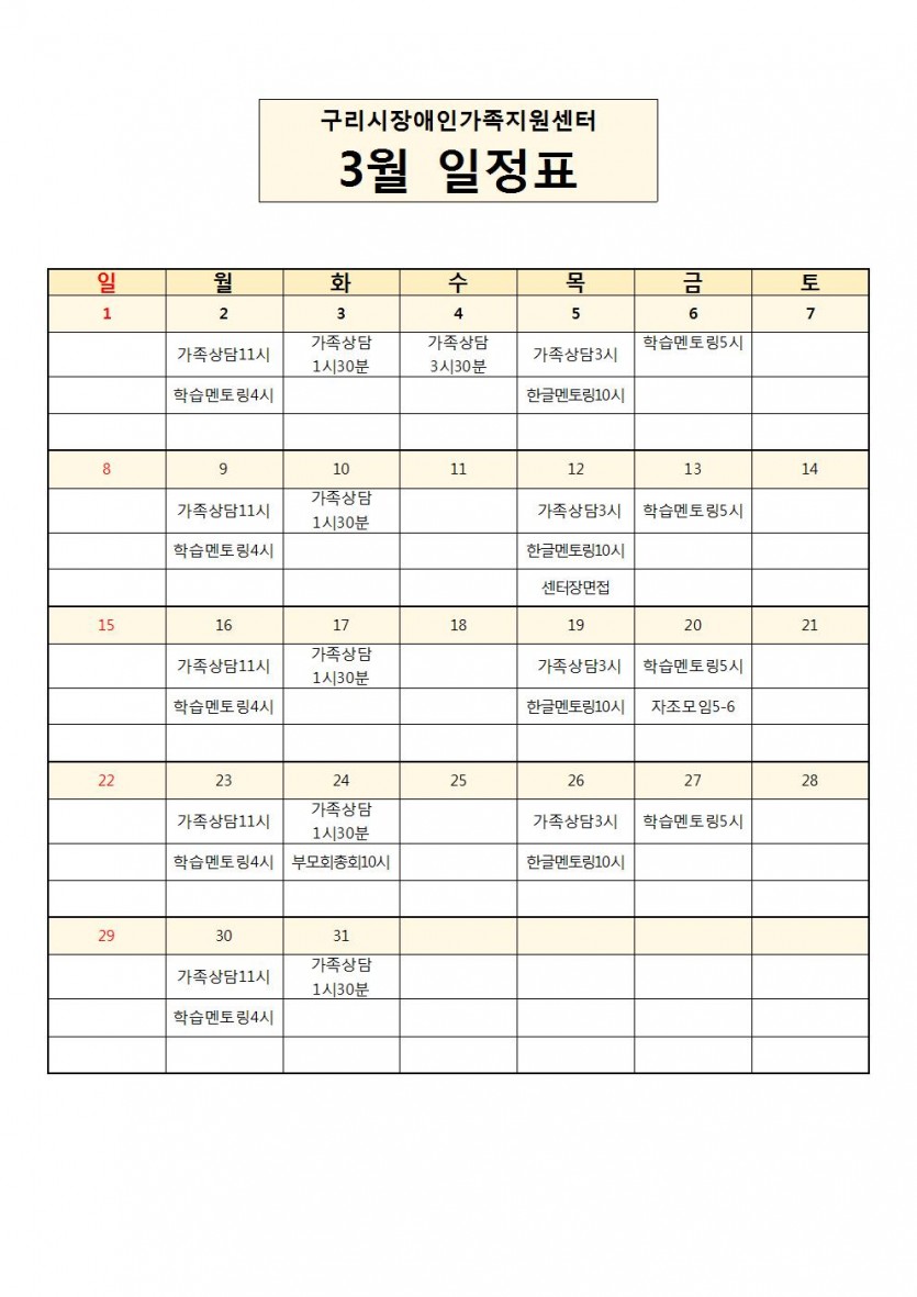 구리시장애인가족지원센터 3월 일정표 공지 페이지 정보 작성자 관리자 댓글 0건 조회 7,793회 작성일 20-02-27 00:18 목록 본문 페이스북 공유 트위터 공유 구글+ 공유 이전글2020년 구리시장애인가족지원센터 사업계획 안내 20.02.27 다음글2020년 구리시장애인가족지원센터 센터장 모집공고 20.02.25 댓글 0 댓글목록 등록된 댓글이 없습니다.