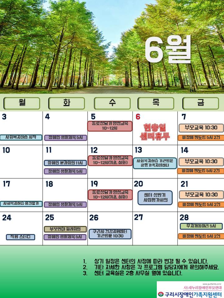 6월 센터일정표 페이지 정보 작성자 관리자 댓글 0건 조회 7,064회 작성일 19-06-03 00:18 목록 본문 페이스북 공유 트위터 공유 구글+ 공유 이전글센터 휴무일 공지(6/6) 19.06.03 다음글(연기) 2019년 발달장애인을 위한 성교육 19.05.24 댓글 0 댓글목록 등록된 댓글이 없습니다.