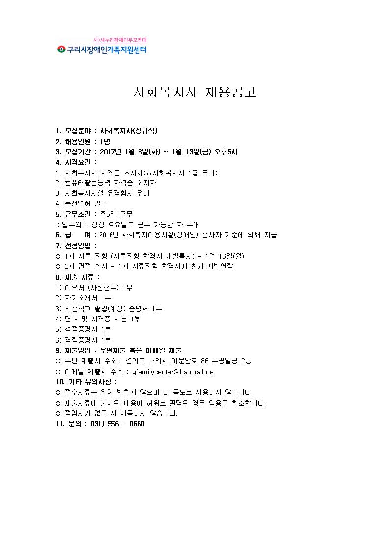 사회복지사 채용공고 페이지 정보 작성자 이윤옥 댓글 0건 조회 7,956회 작성일 17-01-03 00:18 목록 본문 페이스북 공유 트위터 공유 구글+ 공유 null 이전글센터 홈페이지 리뉴얼 중입니다. 17.05.17 다음글발달장애인 자립생활준비 체험홈 프로그램 모집안내 16.12.09 댓글 0 댓글목록 등록된 댓글이 없습니다.