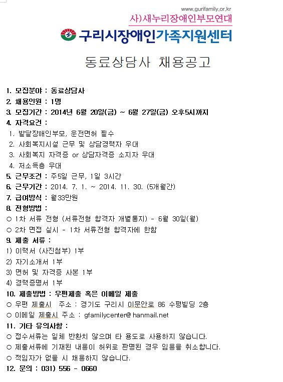 이메일 제출시 주소 : gfamilycenter@hanmail.net