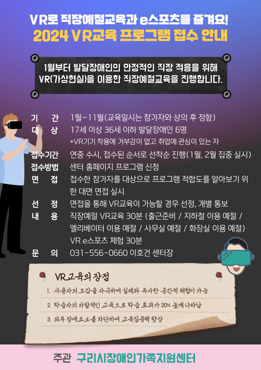 2024 발달장애인 직장예절 함양을 위한 VR교육 프로그램 신청자 접수