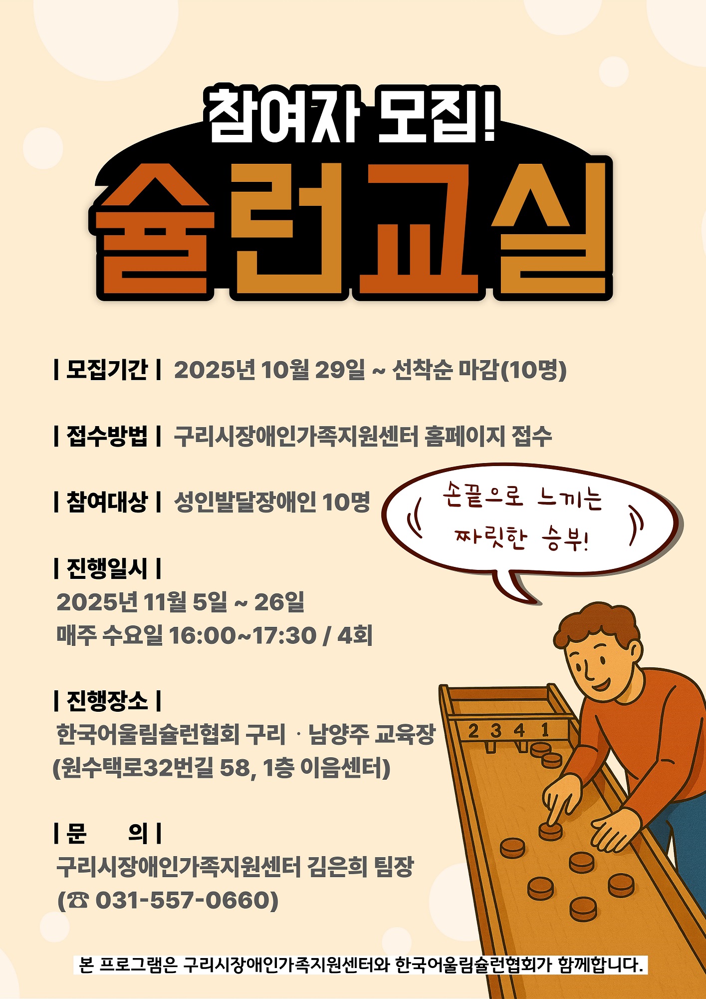 진행장소한국어울림슐런협회 구리남양주교육장(개별 안내 예정)